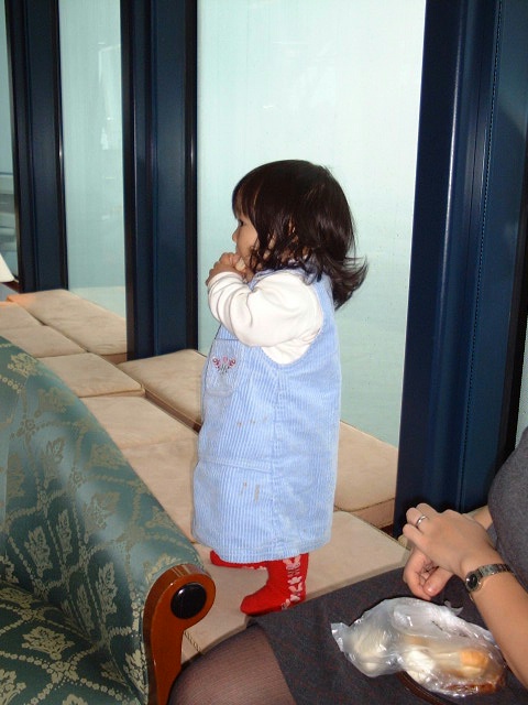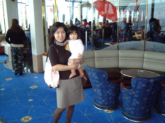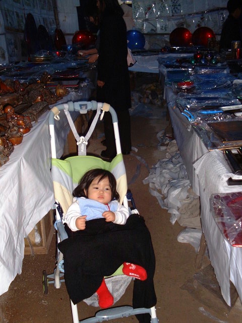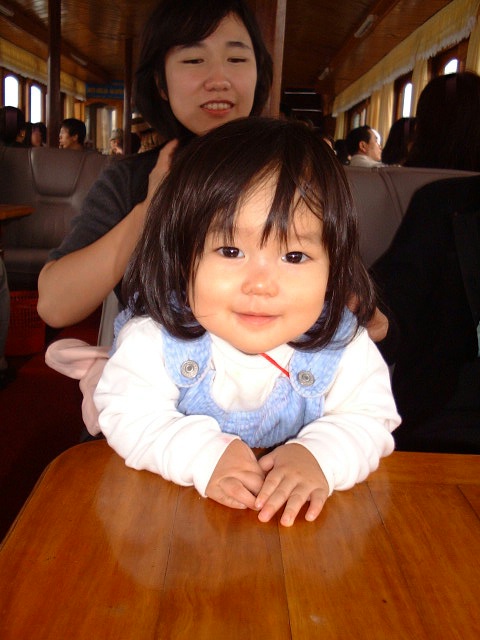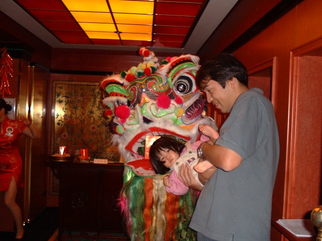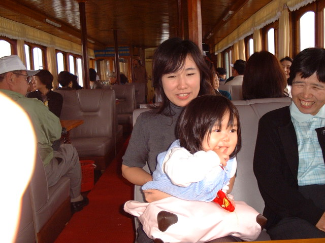 船内の店にあった獅子の口に頭を突っ込み喜ぶ父。 ←それをはらはらしながら見守る母の様な姿。