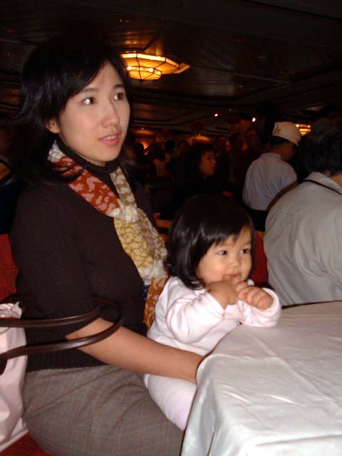 愛らしい茉莉ちゃんの笑顔にほだされたか、近くのTableで夕食を取っていた