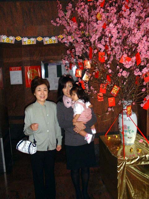 Apartの中は桃の木に紅包が一杯。日本で言えば七夕か、はたまたクリスマスツリーに