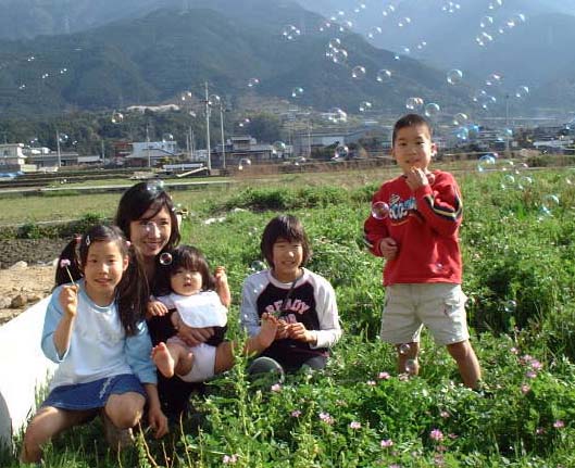 シャボン玉も似合います。*写真に写っていない右側より兄嫁が必死でシャボン玉吹いてます。(笑)
