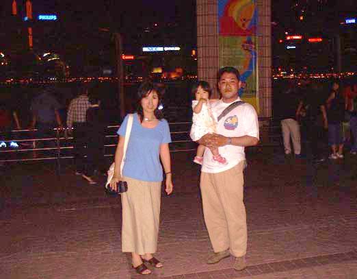 チムシャッツイの映月楼で夕飯を頂き、その後お店の下で香港島側の夜景を眺めながら。