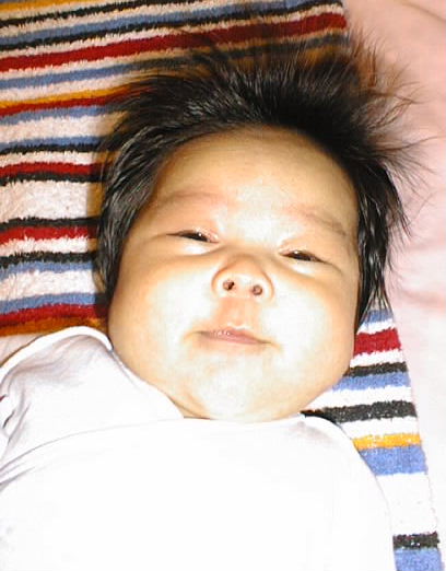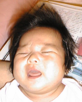 生後間も無い赤ちゃんは、どこか田舎の年老いた母に似た顔。それは腫れている目だけか。