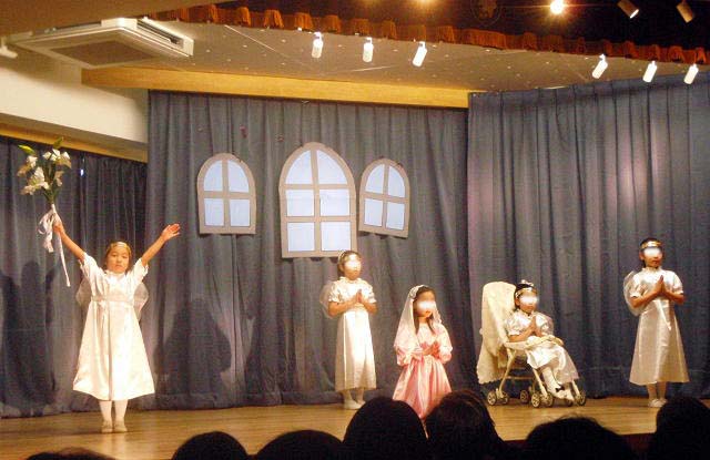 カトリック系の幼稚園である為、園児の卒園式が行われるお御堂に卒園児は