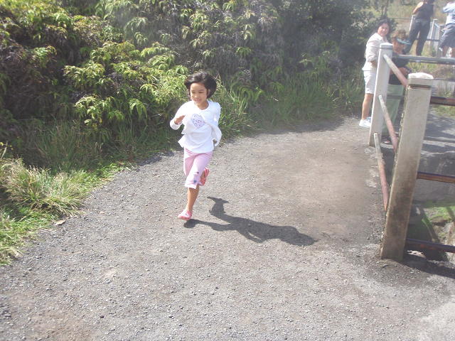 体重を感じつつ、火山の溶岩が固まり歩きにくい所を転ばぬように進む。