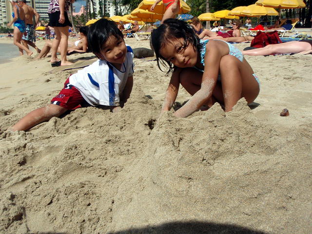 15分ほど楽しんだ後、ビーチで祖父母と茉莉が待つ基地に帰還。