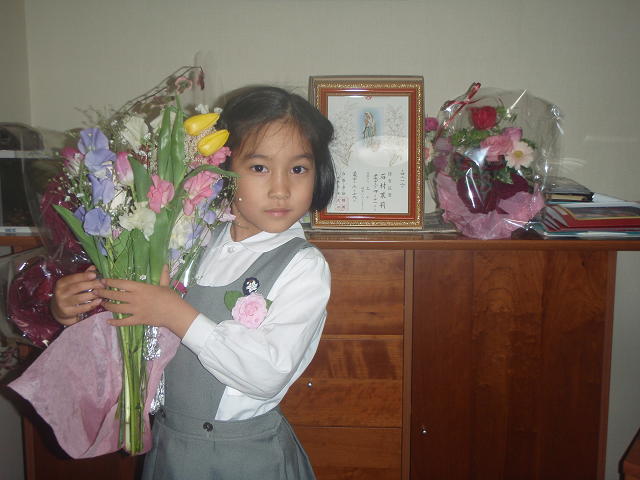 卒園児に色々な花束やプレゼントを幼稚園の父兄や卒園児の母親から贈られるのが