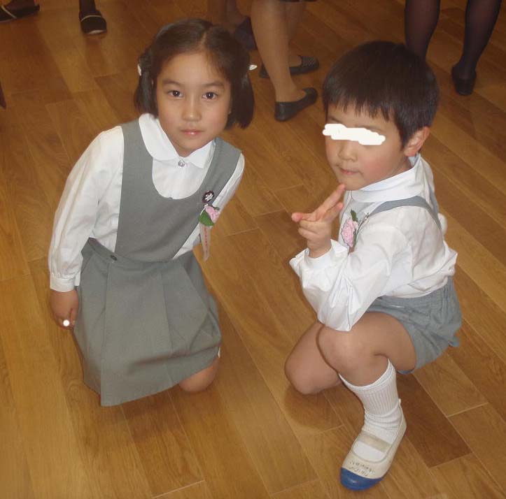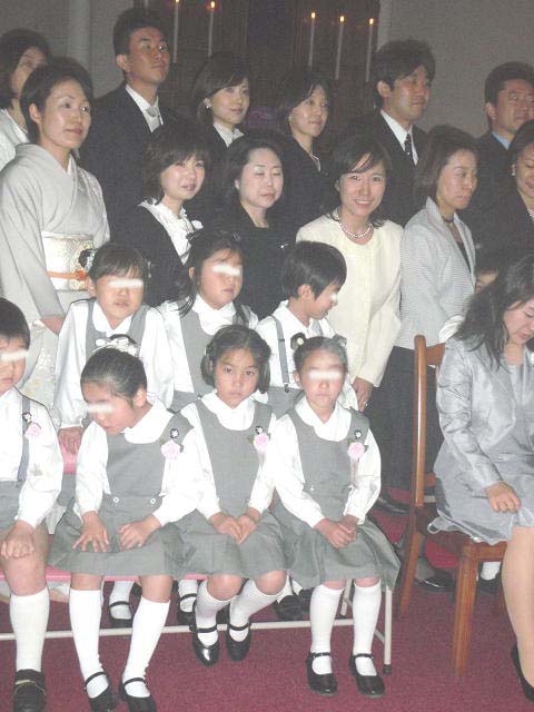 母親と園児ばかりです。父は居場所が無く、柱の陰から美しい晴れ姿を見守って
