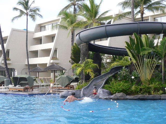 宿泊したSheraton Hotelにはすんごい長い滑り台付きでした。