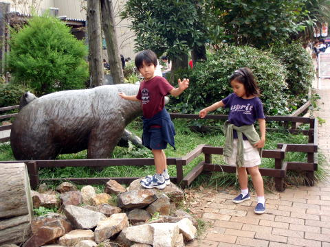 良い遊び相手が来たとばかりに子供達がぶら下がる。