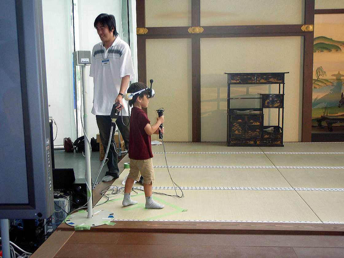 下の写真は、嶺が目の前に現れる侍達をばっさばっさと切り捨てるバーチャルな世界、らしい。
