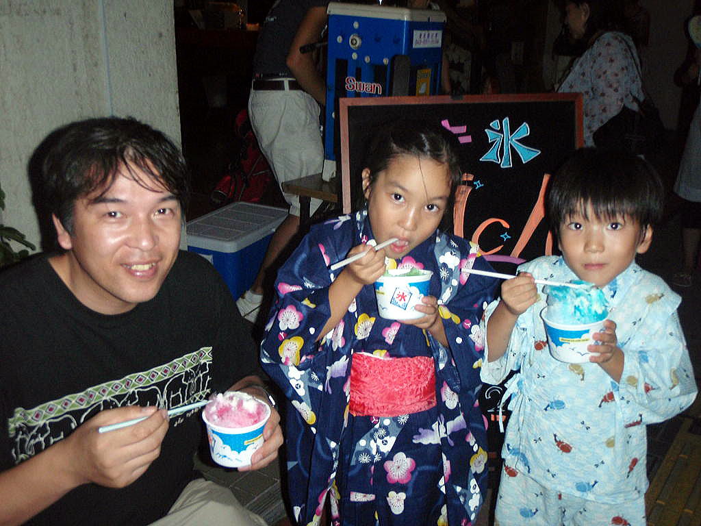 定番のかき氷屋は大人気で、3~4軒出ているが何処も行列。