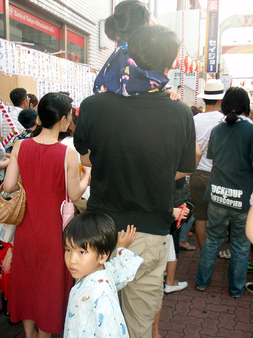 大人の人垣が邪魔になり、子供は見ることが出来ないので肩車を怖がる茉莉も、踊り見たさに父にせがむのである。