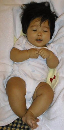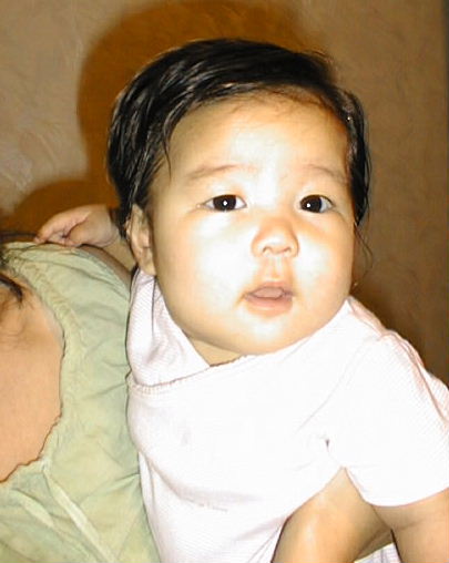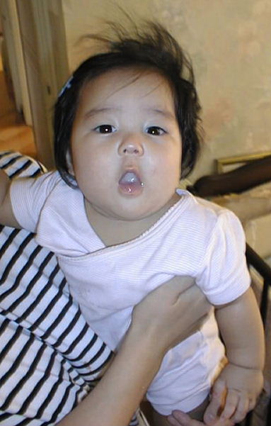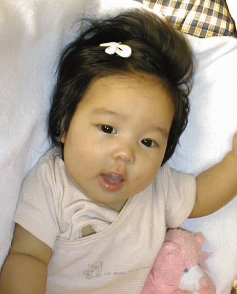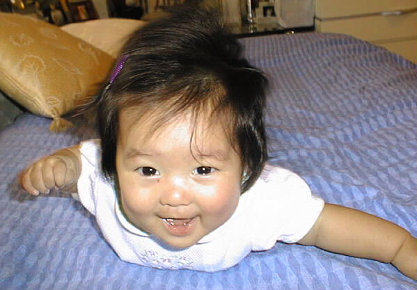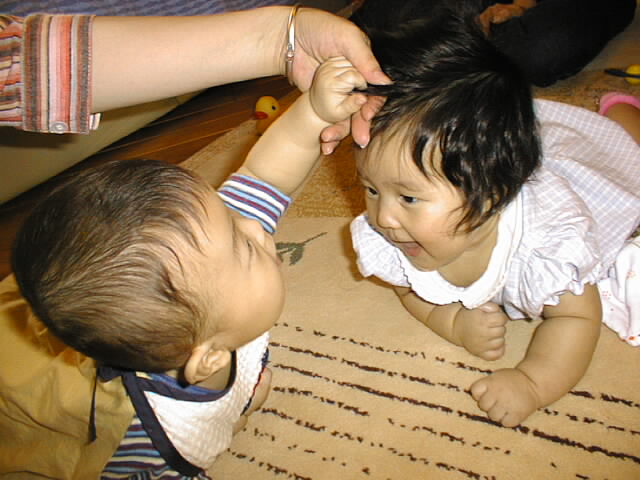BFの恭太君に髪の毛を引っ張られるの図。何故か微笑み。