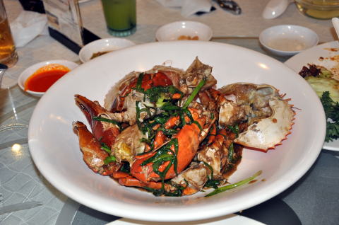 こちらの名物は蟹料理、らしい。ペッパーで炒めたものと、特徴有るカレーで炒めたもの。