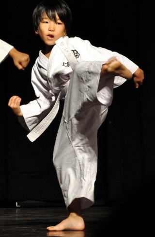 突きとか蹴りを披露しました。腰の入った中々良い蹴りである。