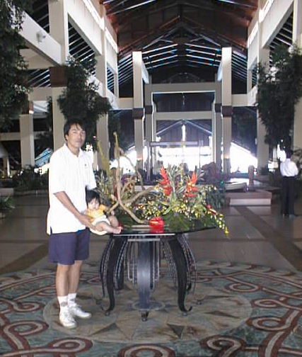 ホテルのロビーで。