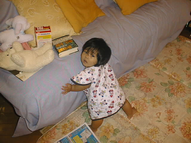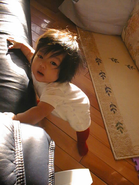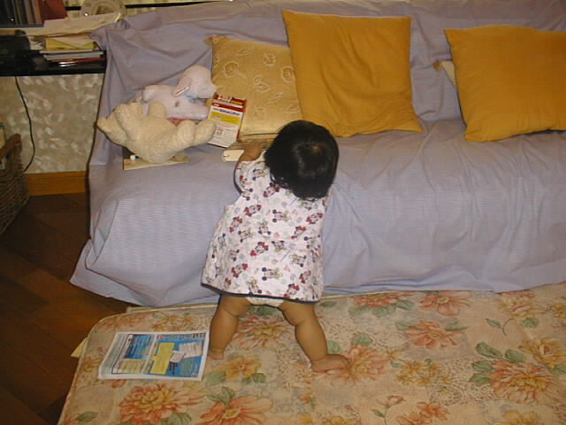 我、7ヶ月にして立つ。でも支えが無いと駄目なの。
